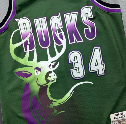 100% Authentic Ray Allen Mitchell & Ness 96 97 Bucks Jersey Size 44 L Mens RARE