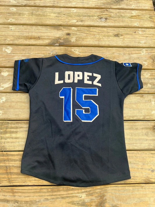 Black Blue Kansas City Royals #15 Lopez Home Jersey Size Medium RARE VINTAGE