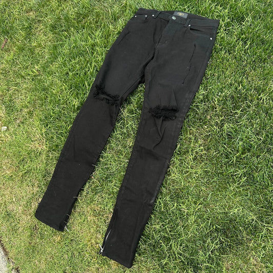 ORO Mens Black Dark Wash Denim 5-Pockets Design Distressed Skinny Jeans Size 30