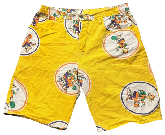 Unbranded Mens Yellow All Over Printed Flat Front Retro Bermuda Shorts
