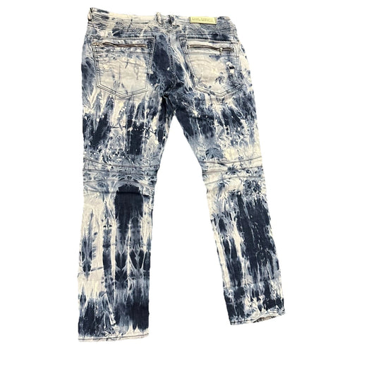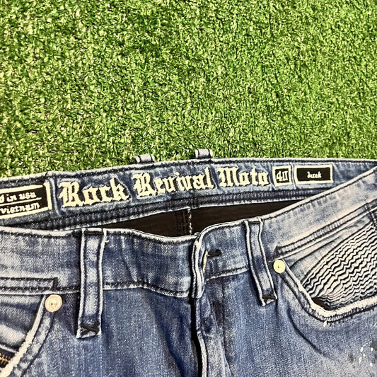 Rock Revival Mens Blue Distressed Moto Jezek Zipper Pocket Jeans Rare 40