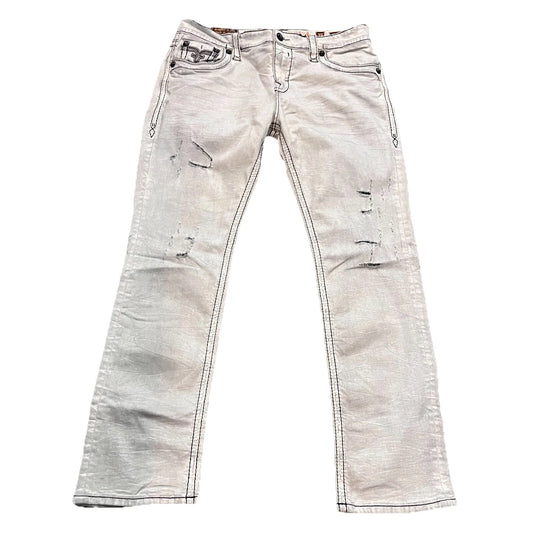 Rock Revival Mens Ivory Western Distressed Cadis Straight Denim Jeans Size 38