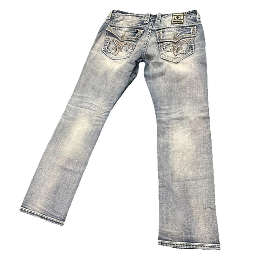 Rock Revival Rare Blue Embroidery Distressed Bleached Young Straight Jeans 38