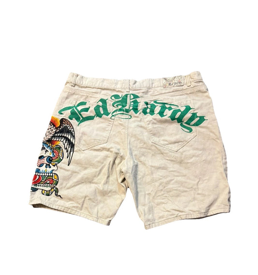 Ed Hardy Denim Beige Skull Snake Skater Fit Vintage Rock Bermuda Shorts Y2K