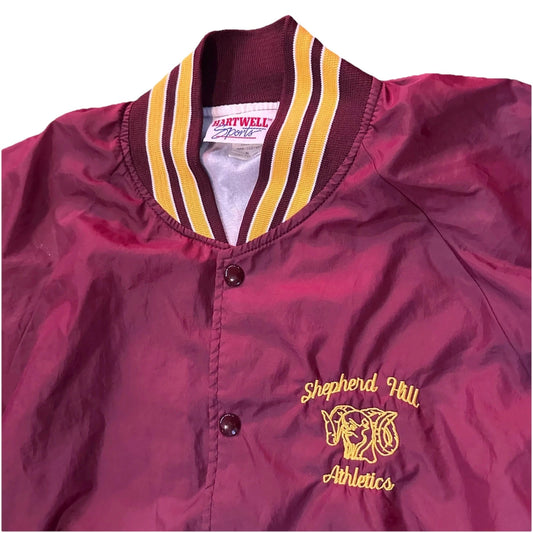 1990s Vintage Mens Maroon Satin Shepherd Hill Athletic Bomber Jacket Size XL