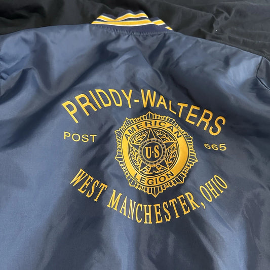 Vintage American Legion Satin Bomber Jacket L Blue Snap Quilted RARE 60s 70s 80s