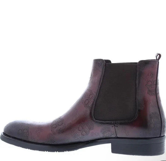 $328 - Robert Graham Big Bang Skull Embossed Wine Chelsea Leather Boot Sz 8 NEW