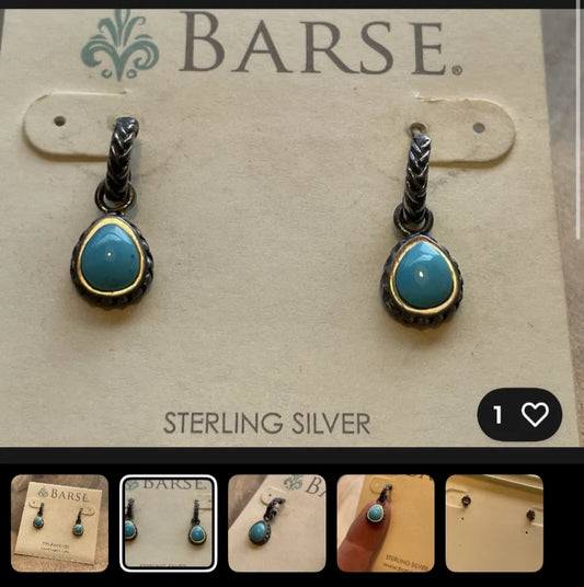 Vintage Barse Sterling Silver Turquoise Dangle Drop Earrings
