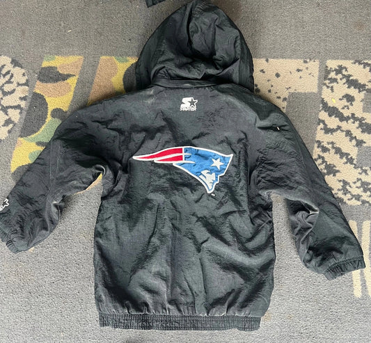 Vintage 90s Starter Youth NFL Football New England Patriots Black Jacket Size S