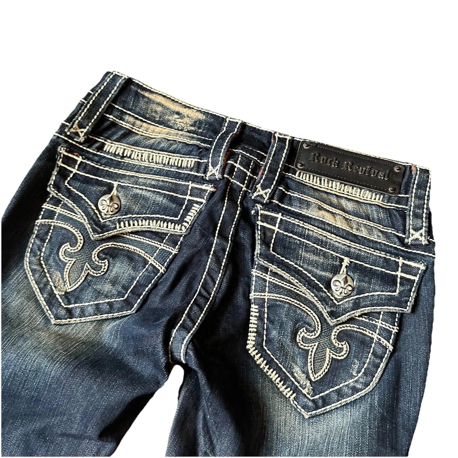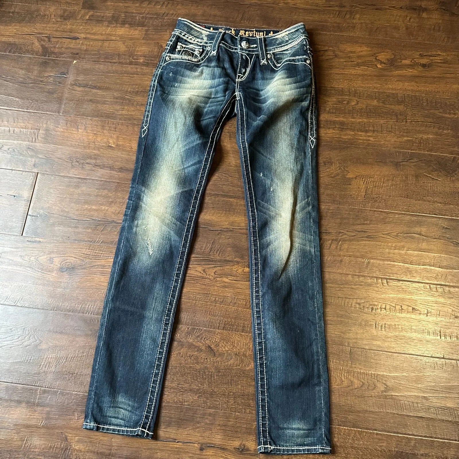 Rock Revival Womens Dark Blue Faded Denim Distressed Jen Skinny Jeans Size 26